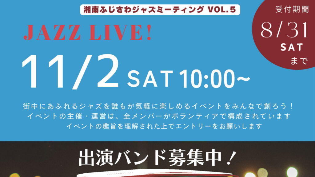 地元藤沢を愛する、お店のオーナーや、地企業の経営者、ジャズを愛する仲間と集い、2019年に実行委員会を立ち上げ、2020年の11月に湘南最大級のジャズイベントを作り上げました。 藤沢には地域に根ざしたイベントは数多く有りますが、純粋にジャズだけをテーマにしたイベントはこれまでありませんでした。